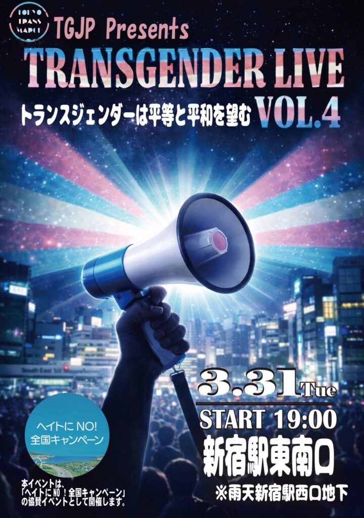 3月31日は「国際トランスジェンダー可視化の日(TDOV)」です。トランスジェンダーの人々を祝い、彼らが直面する差別の現状への理解を広げる日。TransgenderJapanはこの日に、新宿駅東南口で街頭演説“TransgenderLive”を開催します。